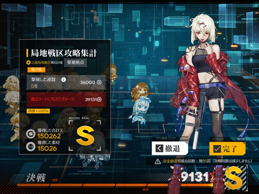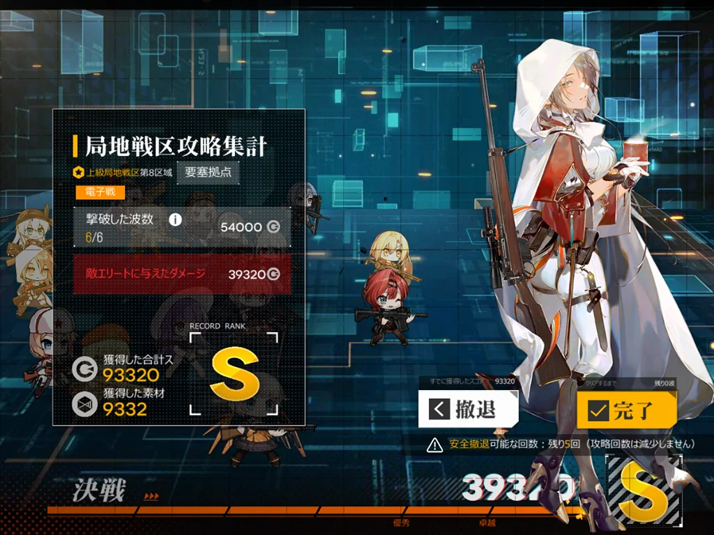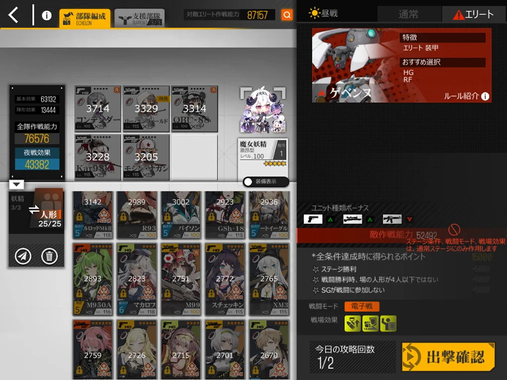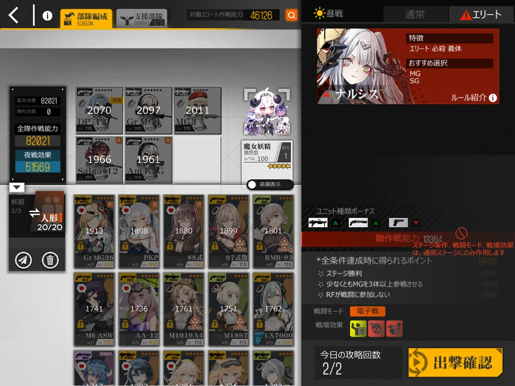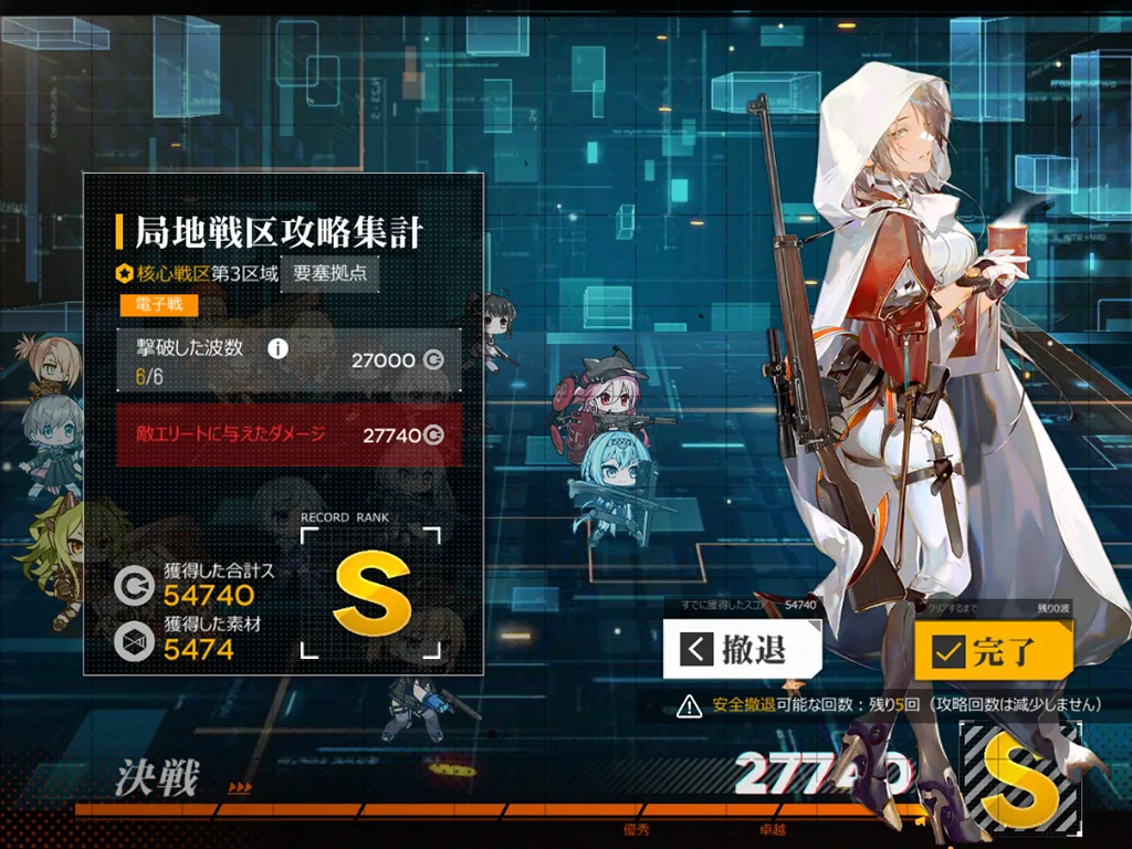 狙撃妖精が強い。貫通レーザーがどこをターゲットしているか不明なのでゴリ押しました。スオミを9に配置、他4ARは1245に配置。XM8とAK15、M4、G11を使うと、貫通レーザー一回分ぐらいで倒せました。XM8が目眩にしてくれるのはありがたい。AK15が防御適正が高いのも良い。正直ターゲット演習に追加できるようにしてほしい。
